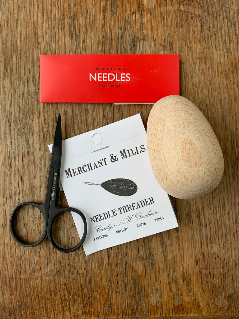 Contains all the Merchant & Mills tools you need for those darning jobs including:Wooden Darning Egg • Needle Threader • Wide Bow Scissors • Selection of needles