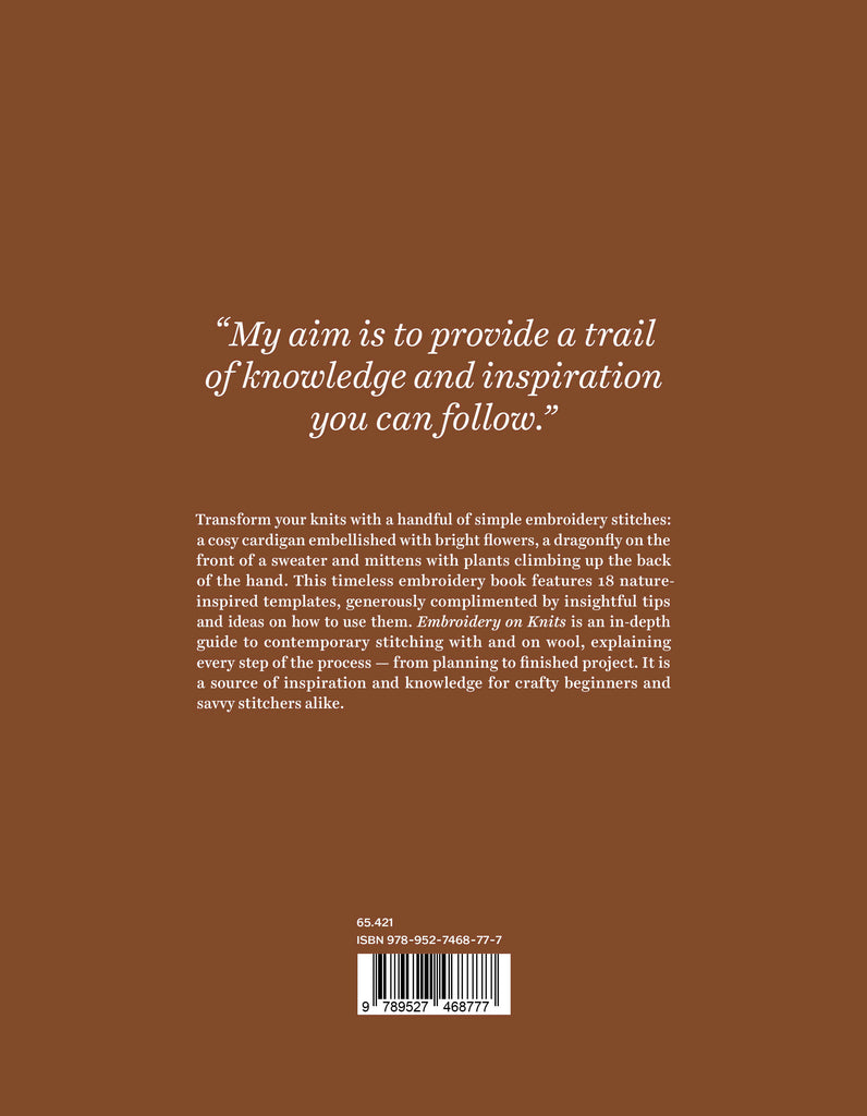 This timeless embroidery book features 18 nature-inspired templates, generously complimented by insightful tips and ideas on how to use them. Embroidery on Knits is an in-depth guide to contemporary stitching with and on wool, explaining every step of the process — from planning to finished project. It is a source of inspiration and knowledge for crafty beginners and savvy stitchers alike.